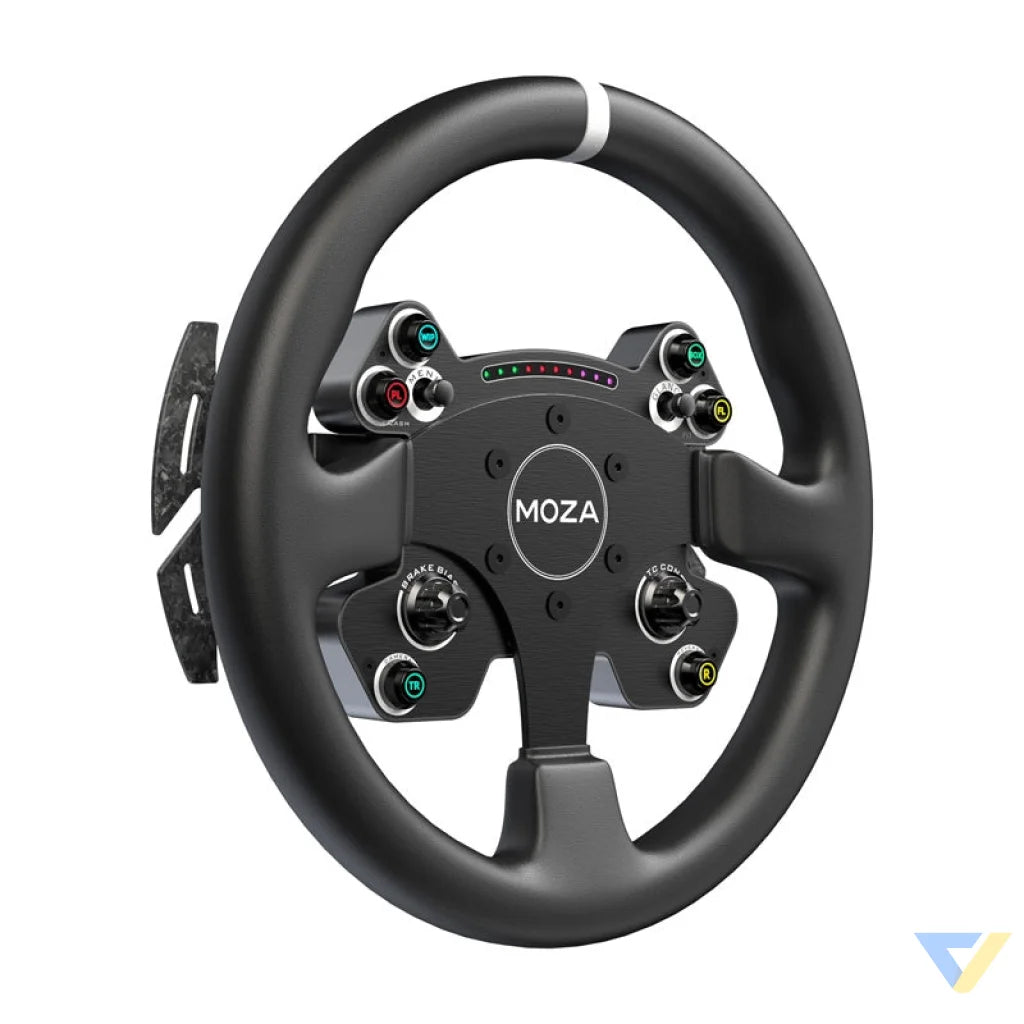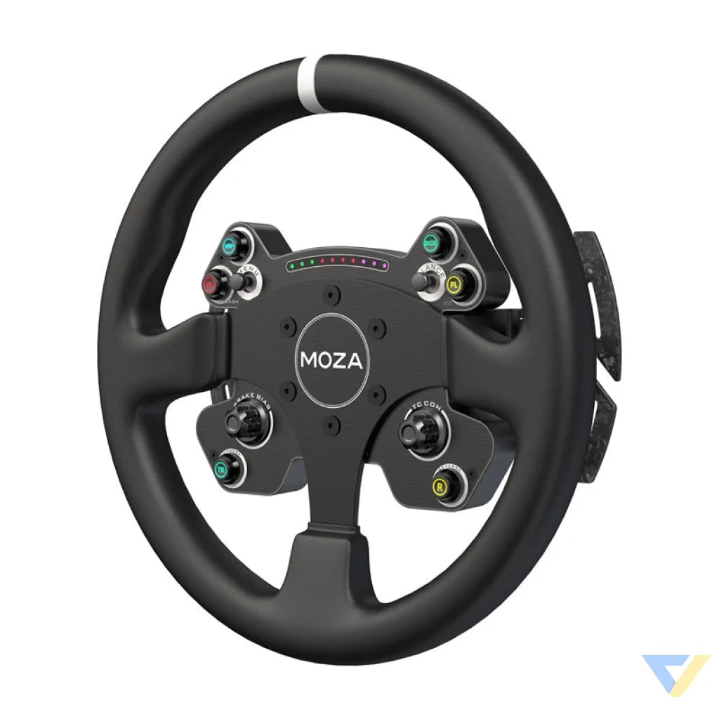 Meet the Moza Racing CS V2P - a professional gaming steering wheel designed for the most demanding simracing fans. Equipped with a 13-inch aluminum rim, magnetic forged carbon fiber paddles, programmable mechanical buttons and sequential RGB LED indicator, it guarantees a realistic and fully controlled driving experience. MOZA's innovative Invisible Connect wireless technology and Quick Release mounting system make it a piece of equipment that impresses with quality, functionality and reliability. If you're looking for a tool that will take your racing to the next level, you've just found it!