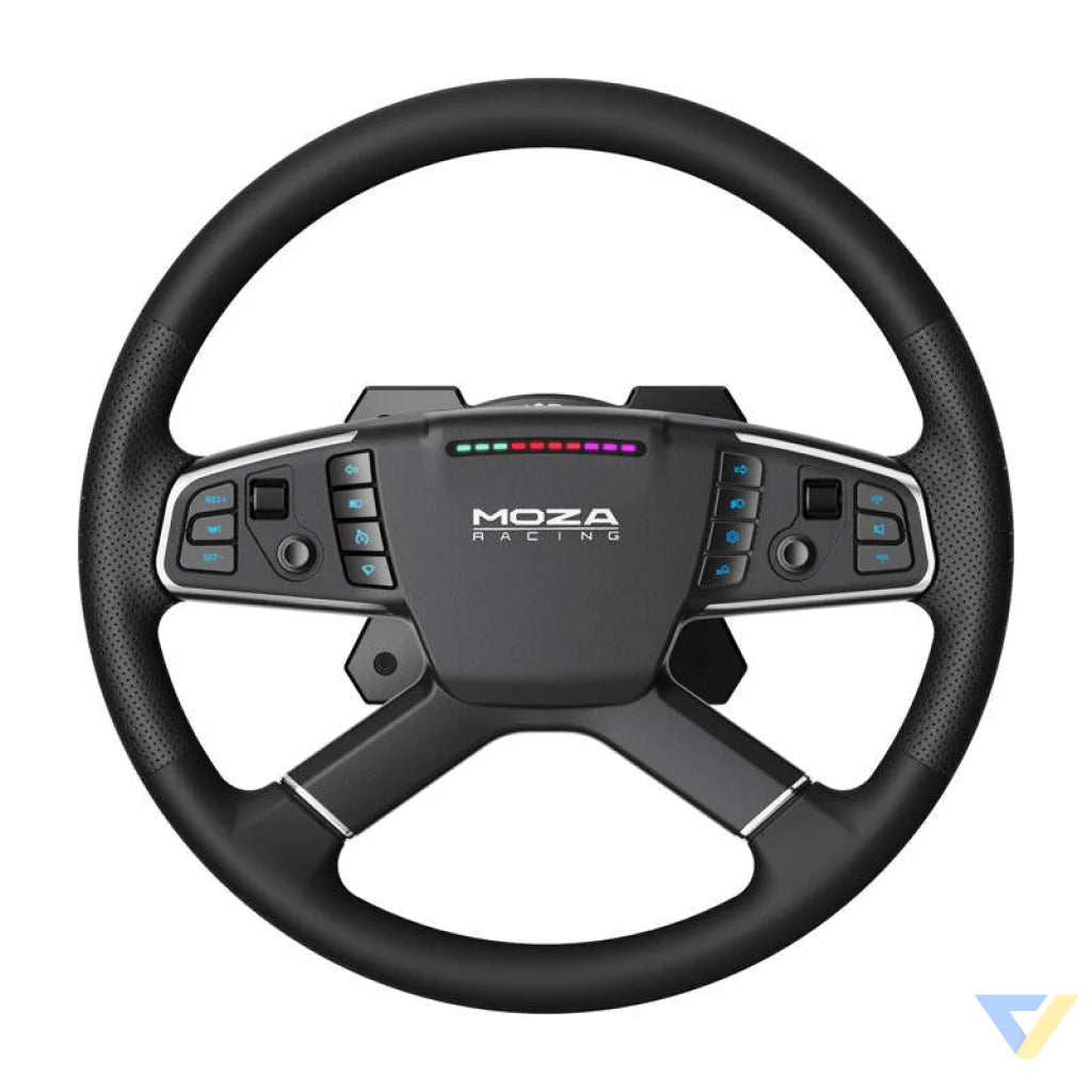 The MOZA Racing TSW RS060 is more than a steering wheel - it's a tool you can customize according to your needs. The 14 RGB backlit buttons offer a full palette of 16.7 million colors, and icons tailored to simulate trucks bring realistic detail. In addition, the 10 LEDs indicating engine RPM and the customization options available in the MOZA Pit House software allow you to perfectly adjust the settings to suit your driving style.