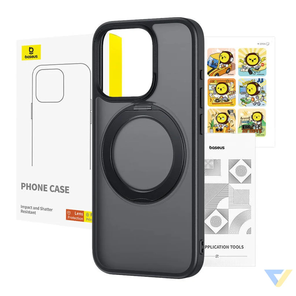 Baseus SkyRing Magnetic case with stand for iP 14 Pro Max + tempered glass and cleaning kit (black). The Baseus...