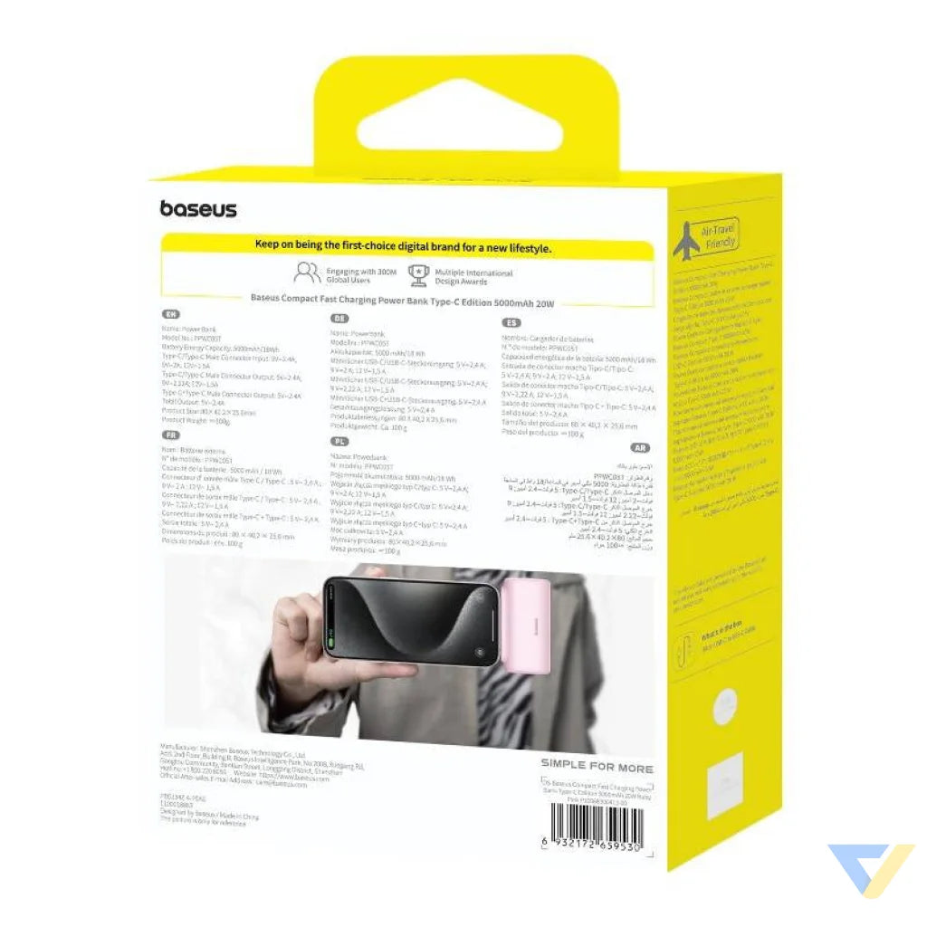 Baseus Compact USB-C Powerbank 5000mAh, 20W (pink)