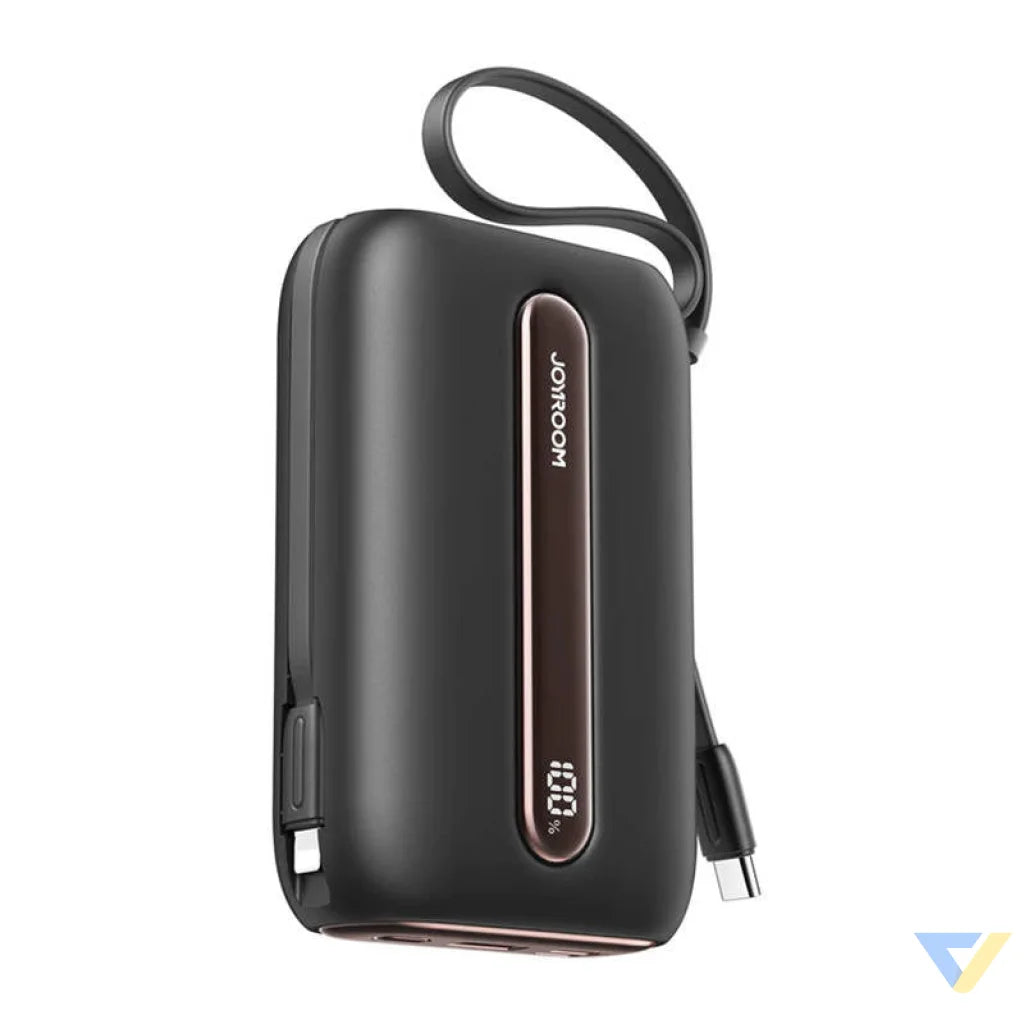 Opt for practical solutions. The Joyroom powerbank provides a capacity of 10,000 mAh and operates at 22.5 watts. It features an easy-to-read display that provides information about the battery's charging status. In addition, it offers up to 3 output ports and has a built-in USB-C/Lightning cable that also acts as a lanyard. Thanks to its compact design, you can take it with you anywhere.