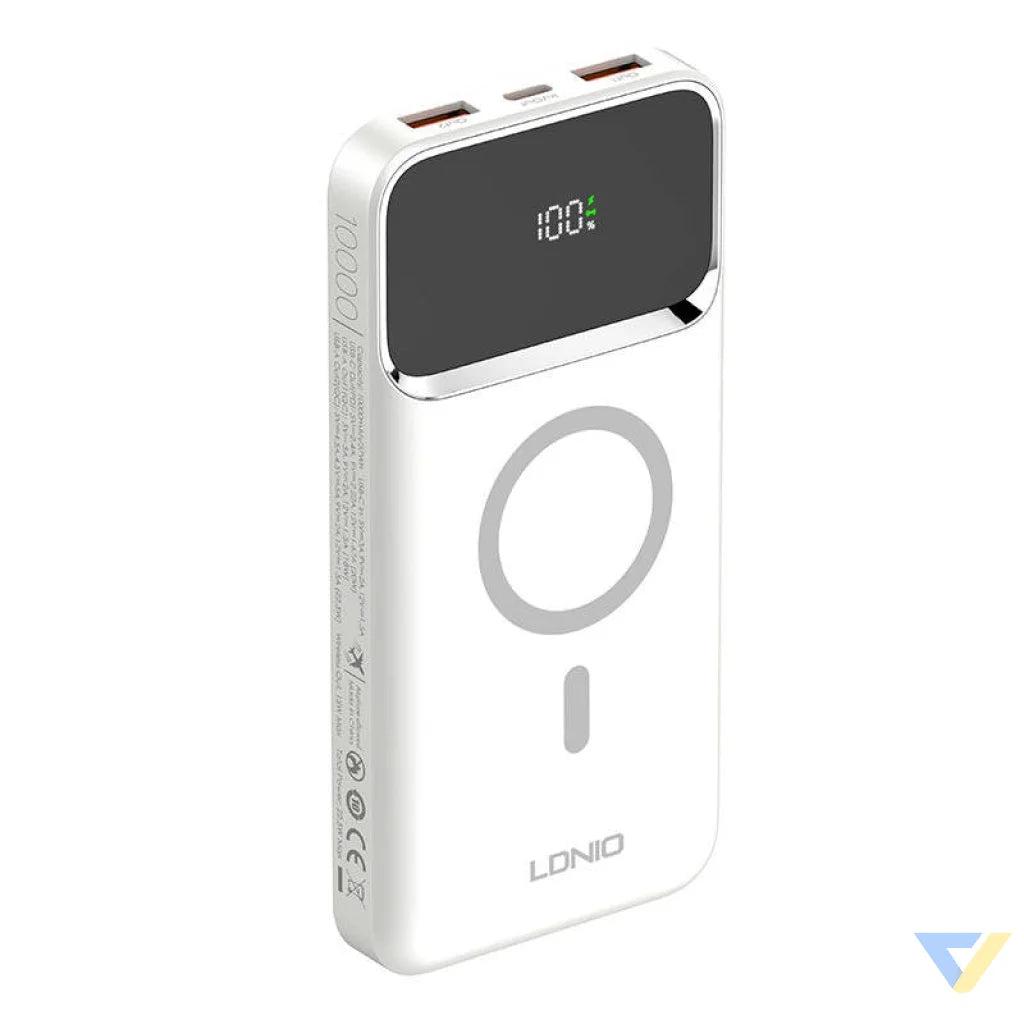Renew the energy of several devices at once with the LDNIO powerbank. The PQ12 features a 10,000mAh capacity, supports fast charging protocols and operates at up to 22.5W. It features one USB-C output port and two USB-A output ports. It also supports wireless charging with up to 15 watts of power. With an LED display, you can conveniently check the battery charge level, and a number of safety features make it safe to use. What's more, you can take it with you anywhere - even on a plane.