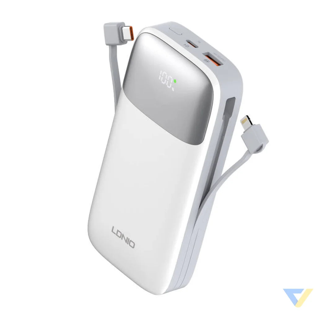The LDNIO PQ20 powerbank is designed for maximum user convenience. It has two built-in cables - USB-C and Lightning, thanks to this solution you don't have to remember to bring extra cables, making it easy to use the powerbank on the go or at work. The device also features an intuitive LED display that tells you the current state of charge.