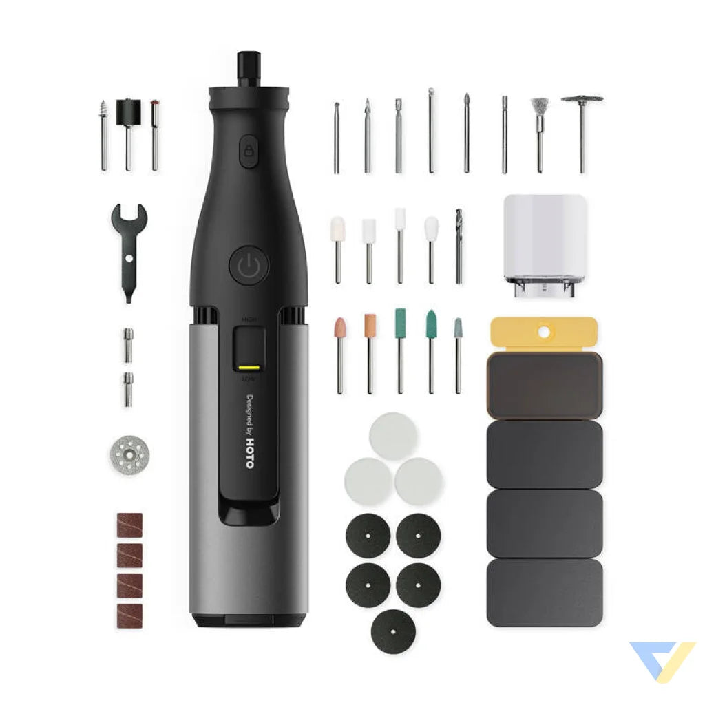 The HOTO QWLDM002 precision multifunction grinder is a tool created for those who value high performance and flexibility in operation. With a powerful brushless motor and adjustable speeds from 5,000 to 35,000 rpm, this grinder can perfectly handle a wide range of tasks such as cutting, carving, grinding, polishing, drilling and more. It is an ideal choice for both amateurs and professionals tackling a variety of craft projects.