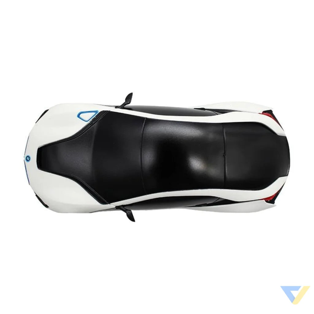 RASTAR BMW i8 remote-controlled car in 1:24 scale is a futuristic model with a unique UV-sensitive color change feature. In sunlight or under LED light, the body changes color from white to yellow, adding a modern touch and a unique look. This licensed BMW model combines innovative technology with a dynamic silhouette, faithfully reproducing the details of the real vehicle. Designed for children over the age of 6, it provides exciting fun and creative experiences.