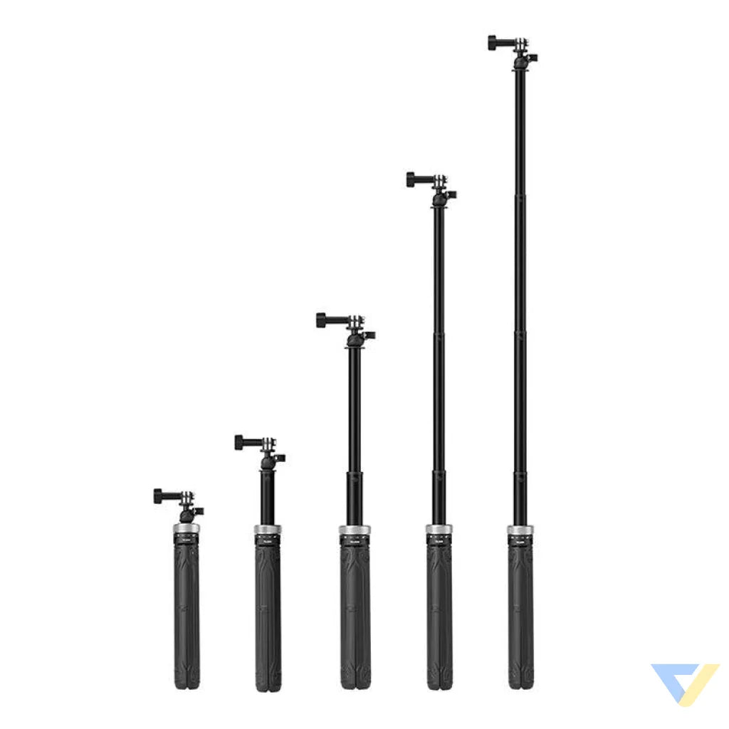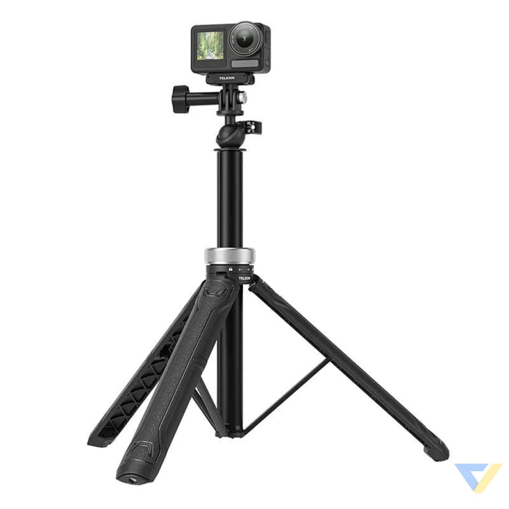 Telesin S1-TSS-01 is an invaluable accessory for any filming enthusiast. This practical selfie stick unfolds to a length of about 1.5 meters, and thanks to the use of top-quality materials it is very durable and stable - don't worry about it wobbling. The product can also serve as a tripod. It is equipped with 3 extendable legs, which are perfect for various types of surfaces - both flat and uneven.