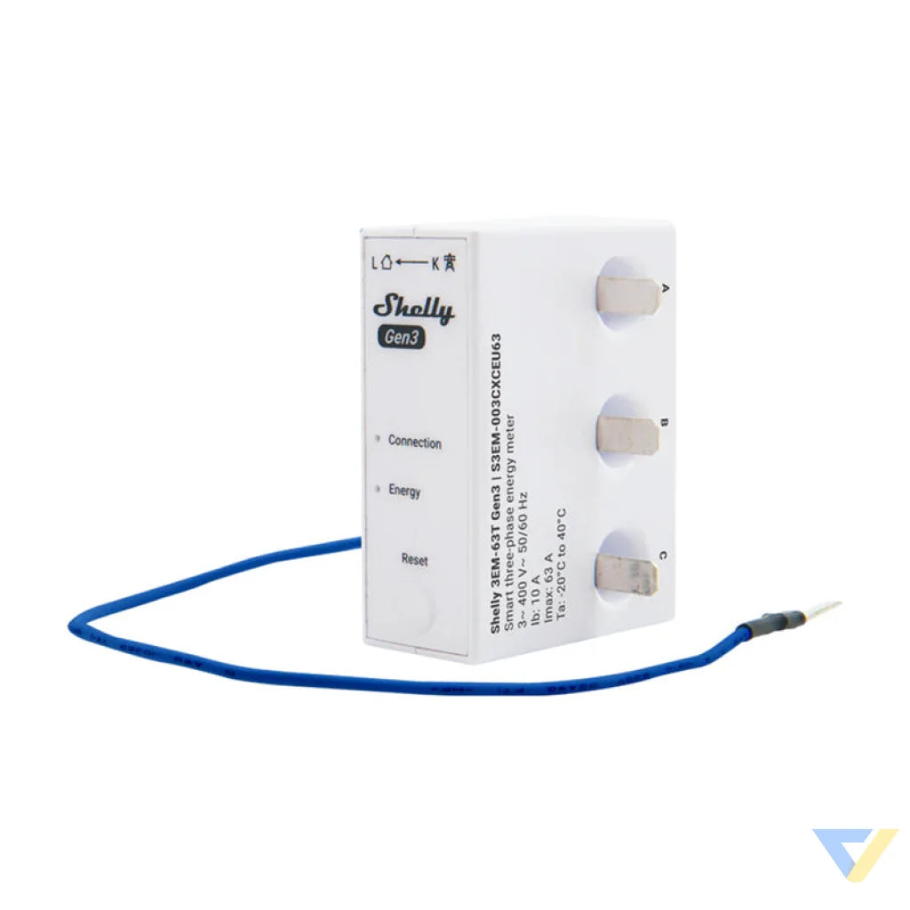 The Shelly 3EM-63T Gen3 is a compact 1/3-channel energy meter designed to monitor three-phase installations or three independent single-phase circuits. With its flat terminals and housing designed to be mounted above or below an overcurrent circuit breaker, it easily fits into standard switchboards. This small device is ideal for homes, apartments, businesses and photovoltaic installations - wherever precise control of energy consumption is important.