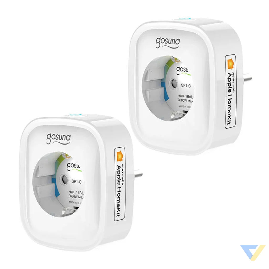 Take smart home management to a new level. The Gosund SP1-H smart outlet allows you to pair your devices with Apple HomeKit and operate them conveniently from a distance. Group your appliances, control them with your voice and create work schedules for them. You can also share control with family or friends. The set includes 2 smart sockets SP1-H. Type DE - without hole (side earthing)