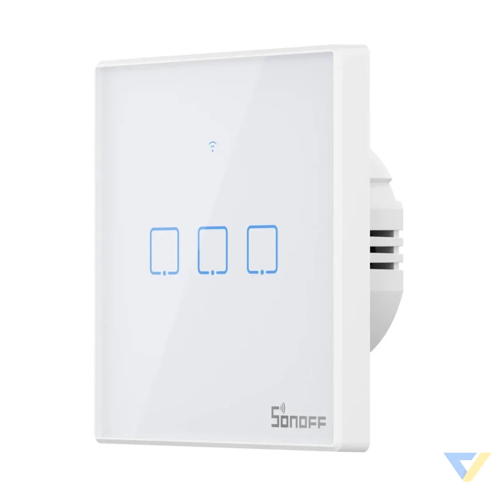 Sonoff TX is a touch and smart light switch. It can be operated using an app via WiFi or classically, by touch. You can turn on the light in the room of your choice at home, no matter where you are. Made of high-quality materials, such as heat-resistant ABS and tempered glass, it ensures safety and blends in perfectly with any room. The gentle backlighting of the switch, subtly enhances its design and makes it visible at night.