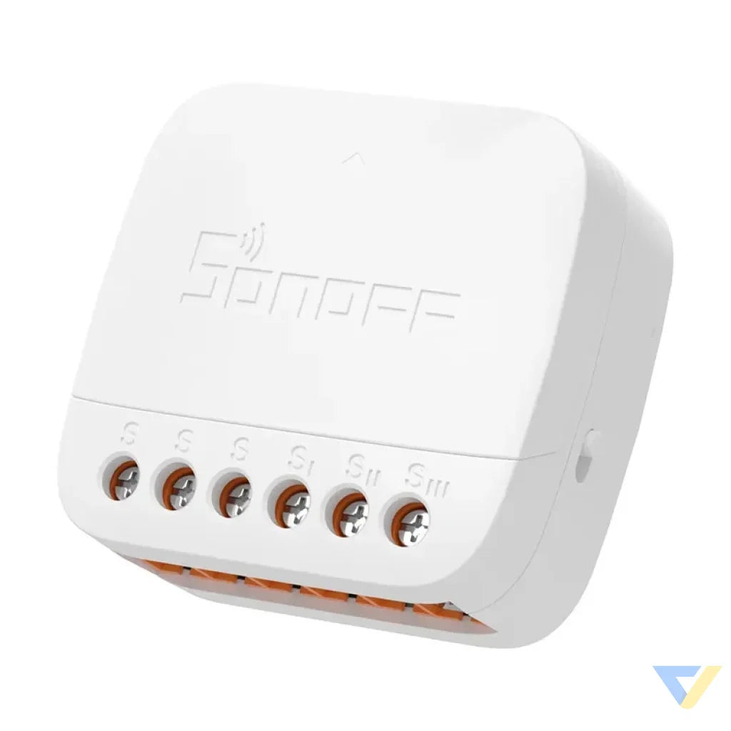 The Sonoff S-MATE2 switch is distinguished by its minimalist design and high build quality. Its compact dimensions (40.3 x 37.4 x 18.3mm) and elegant white color make the device blend in well with any interior. Made of durable ABS material, it provides long-lasting durability.