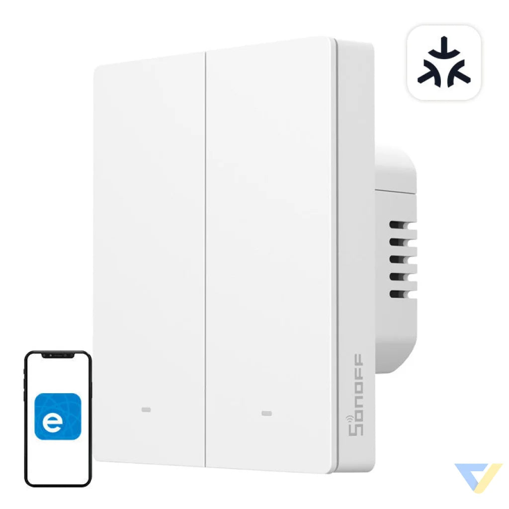 The Sonoff M5 Matter wall switch allows you to conveniently manage lighting and electrical devices in your home. With physical buttons, you can easily turn lights on and off, and with the help of the eWeLink app, manage your devices from anywhere in the world. You don't have to worry about forgetting to turn off the lights - now you have everything under control. The product fits into a frame that you can buy separately.