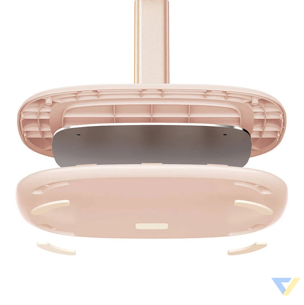 The mount is equipped with a wide base with weight to ensure stability. What's more, silicone elements prevent the stand from moving on the surface of a desk, table, etc. You can stow the smartphone holder at any time when you are not using it, and the product's base allows you to store small accessories, such as TWS headphones or a smartwatch.