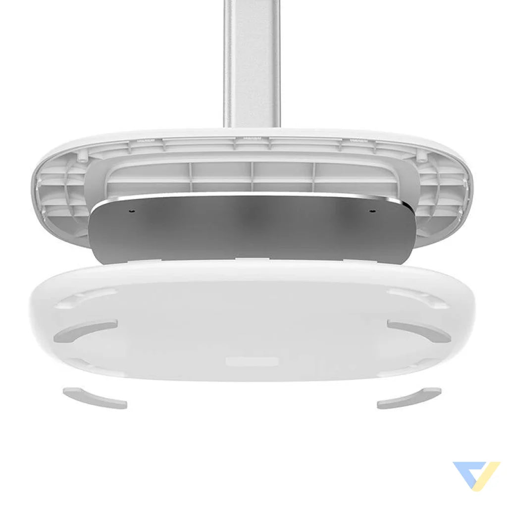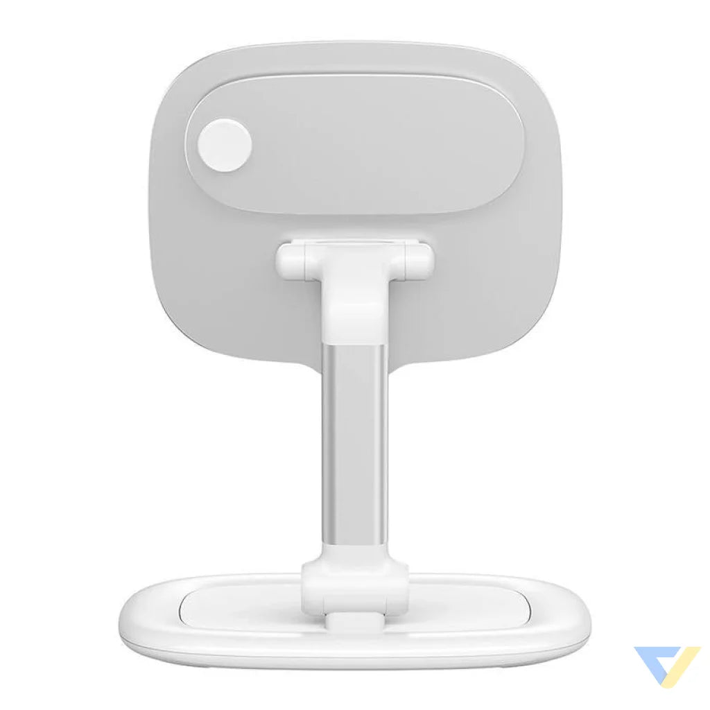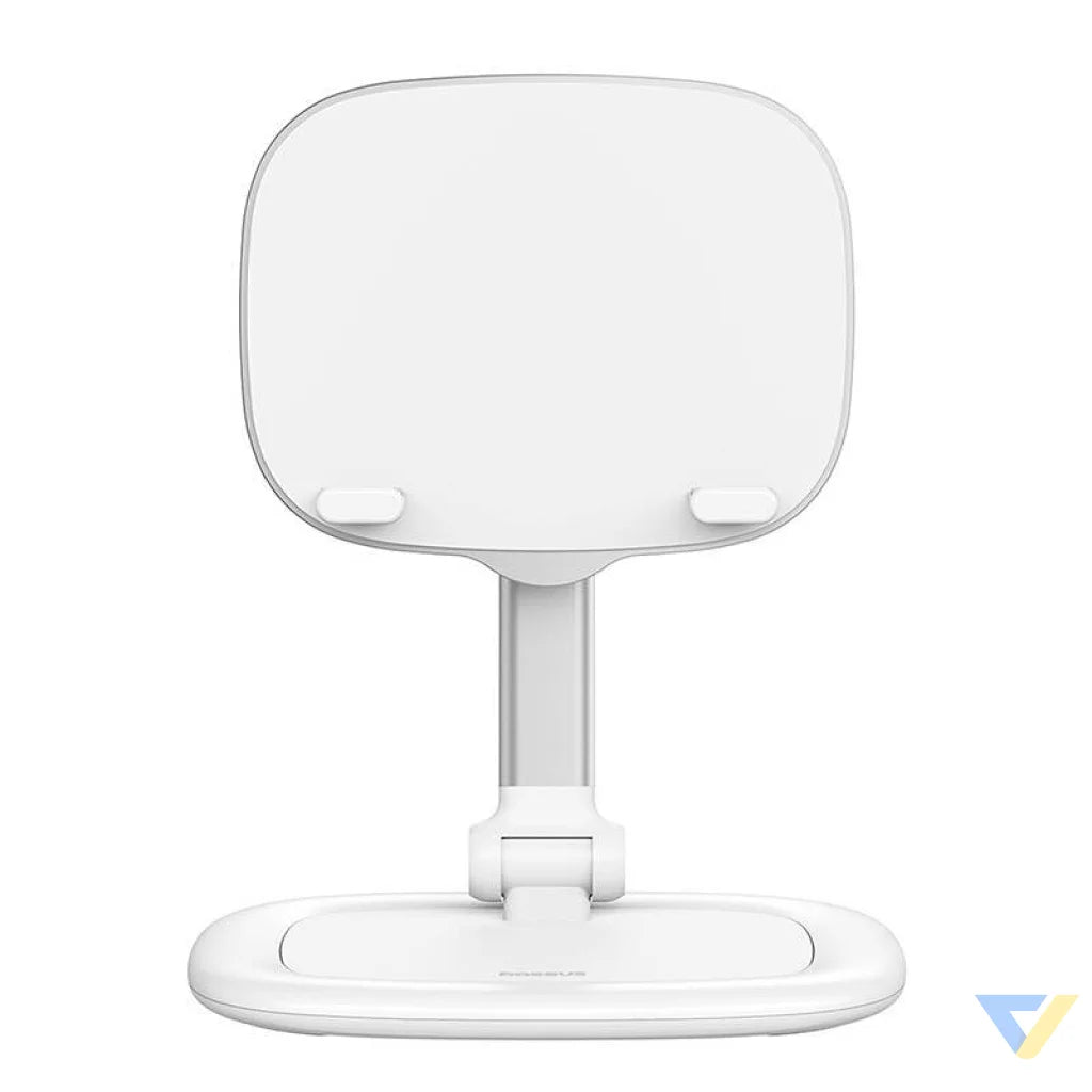 The mount is equipped with a wide base with weight to ensure stability. What's more, silicone elements prevent the stand from moving on the surface of a desk, table, etc. You can stow the smartphone holder at any time when you are not using it, and the product's base allows you to store small accessories, such as TWS headphones or a smartwatch.