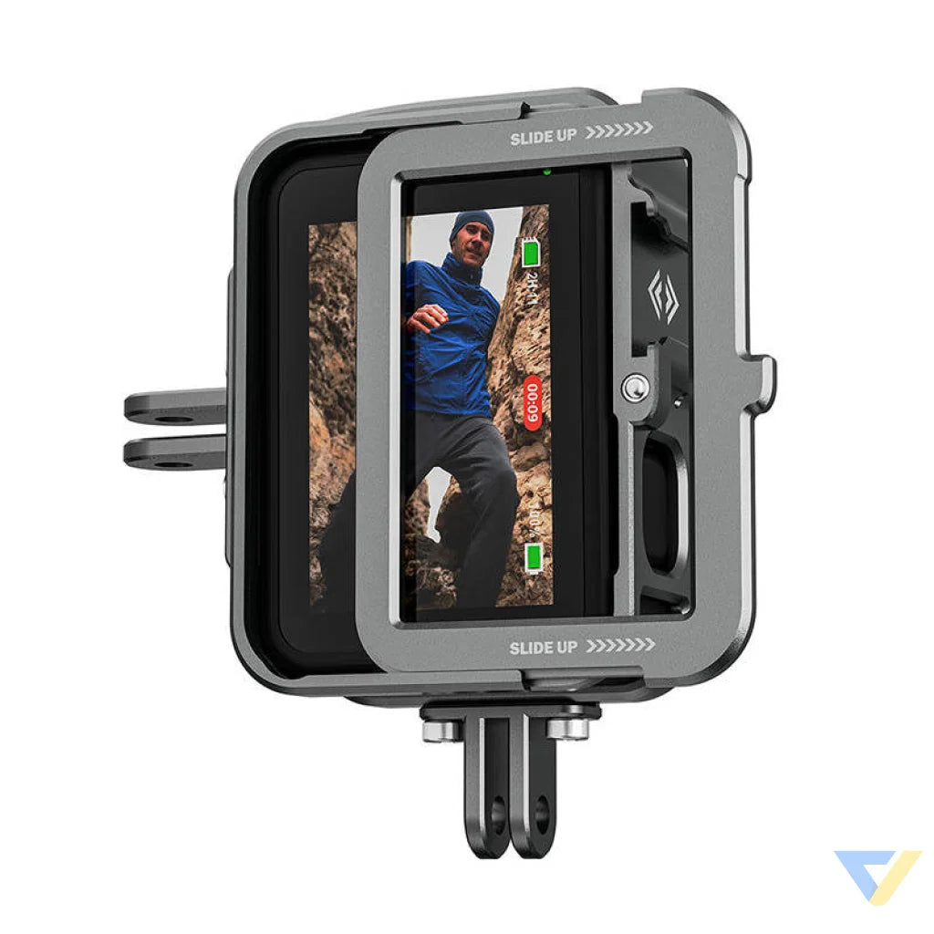 Благодаря продуманному дизайну, корпус позволяет удобно использовать камеру, размещённую в нём, и не ограничивает ваши возможности. Одна из сторон аксессуара открывается, что облегчает подключение устройства для зарядки. Также у вас достаточно места для установки макрообъективов или ND-фильтров без препятствий. Вы можете в любой момент переключиться на вертикальную съёмку — просто прикрепите прилагаемый адаптер к корпусу.