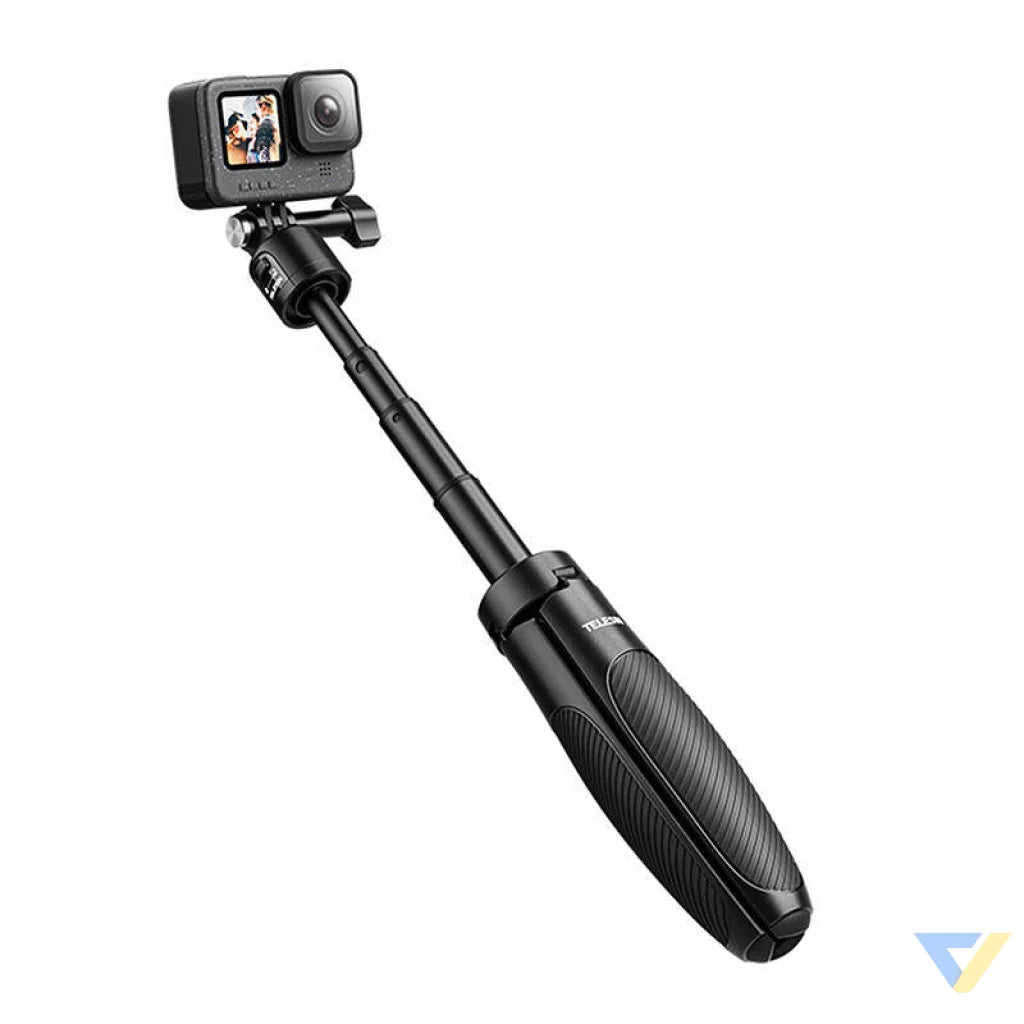 The Telesin Selfie Stick with Tripod (model S1-MNP-02) is a multifunctional accessory for sports cameras that will work well for vlogging, travel and live broadcasting. Its versatile design combines the function of a classic selfie stick and a stable tripod, making it ideal for active users.
