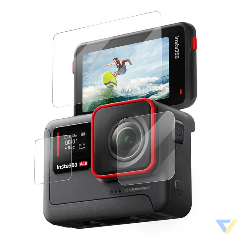 Take care of comprehensive protection for your Insta360 Ace Pro/Ace camera. The TELESIN S6-FLM-02-TIS kit includes tempered glass for your device's main screen and lens, as well as a laminated cover for the second, smaller display. It's a great way to protect them from cracks, scratches or other types of damage! The accessories are distinguished by high light transmission (99%), so they do not adversely affect the image quality. They also feature a perfect fit to the design of the device and are easy to install. They also do not hinder the touch operation of the camera.