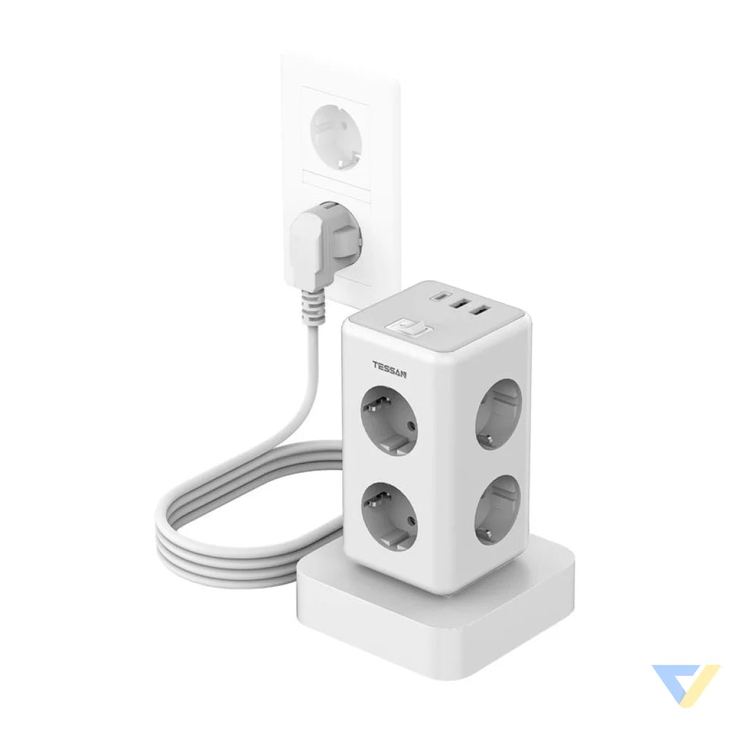 The Tessan TS-306TS-C is a modern power strip that combines high functionality with safe use. Equipped with six AC outlets, two 12 W USB-A ports and one 15 W USB-C port, it allows you to connect as many as nine devices simultaneously. With a 2-meter long cable, the strip can be freely placed anywhere for convenient use in the office, living room or bedroom. Its vertical design saves space, and the large spacing between outlets (5.5 cm) allows you to comfortably connect larger plugs and power supplies.