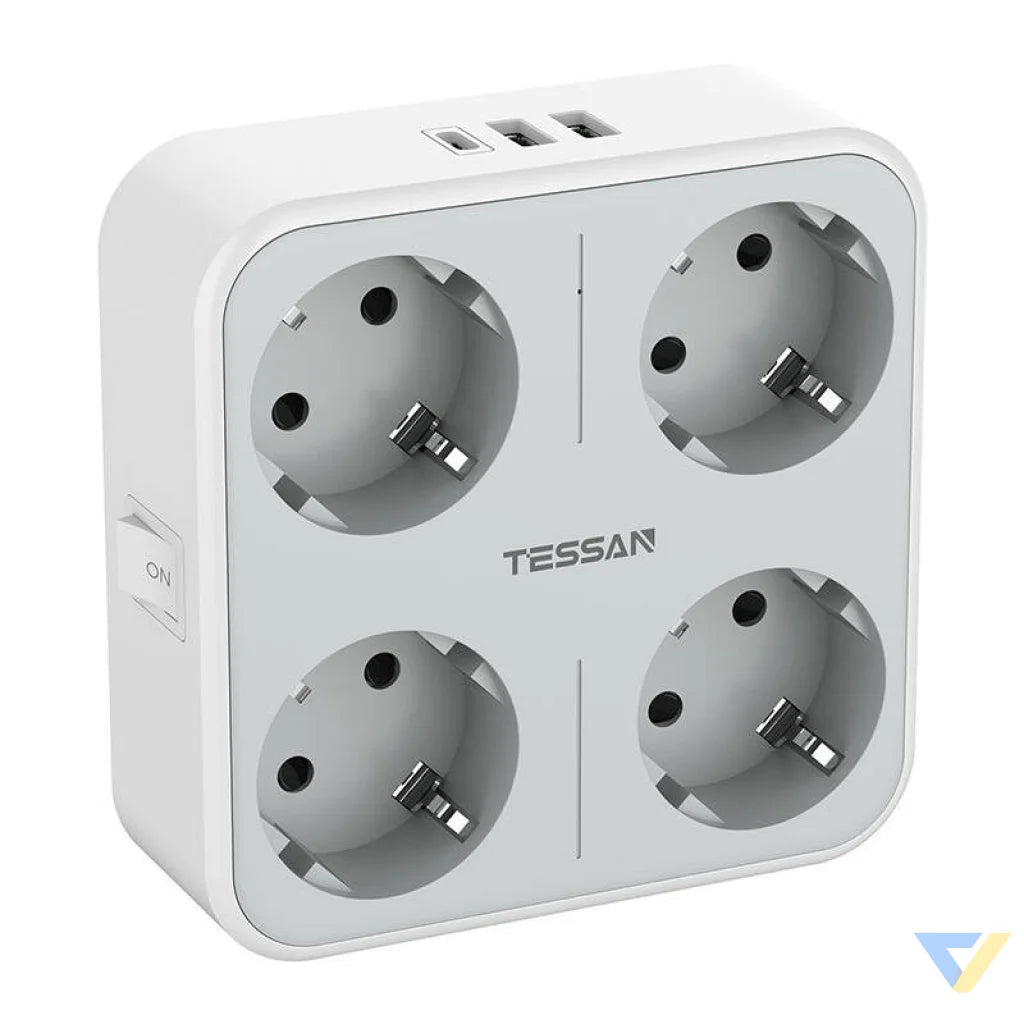 The Tessan TS-302-DE-C wall outlet is an ideal solution for those who appreciate functionality. With four outlets and three USB ports, this compact device allows you to charge as many as seven devices simultaneously. Whether you need power for your laptop, smartphone, tablet or other devices, the Tessan TS-302-DE-C will meet your expectations.