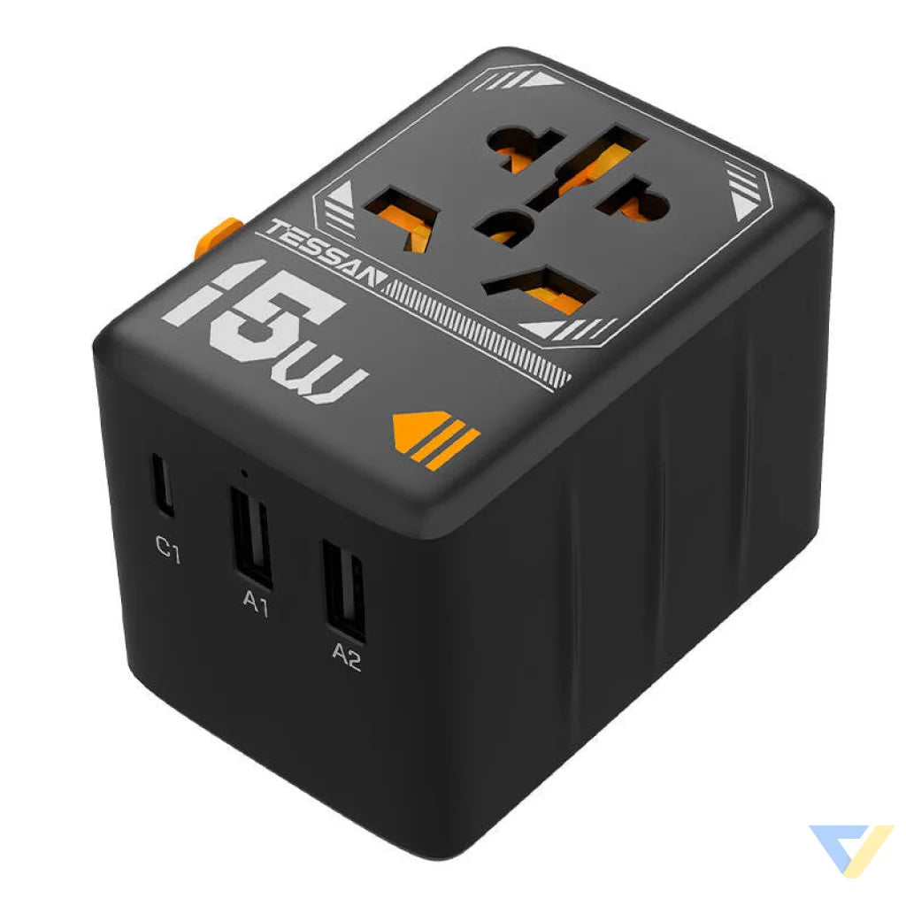 With the Tessan WTA-01 travel adapter, you no longer have to choose which of your devices to charge first. With 2 USB-A ports and a USB-C port, you can charge up to three devices simultaneously with up to 12 watts of power. This means your smartphone, tablet and laptop can be up and running even faster. What's more, the USB-C port allows you to charge at up to 15 watts and 3A - that's up to 3 times faster compared to original chargers.