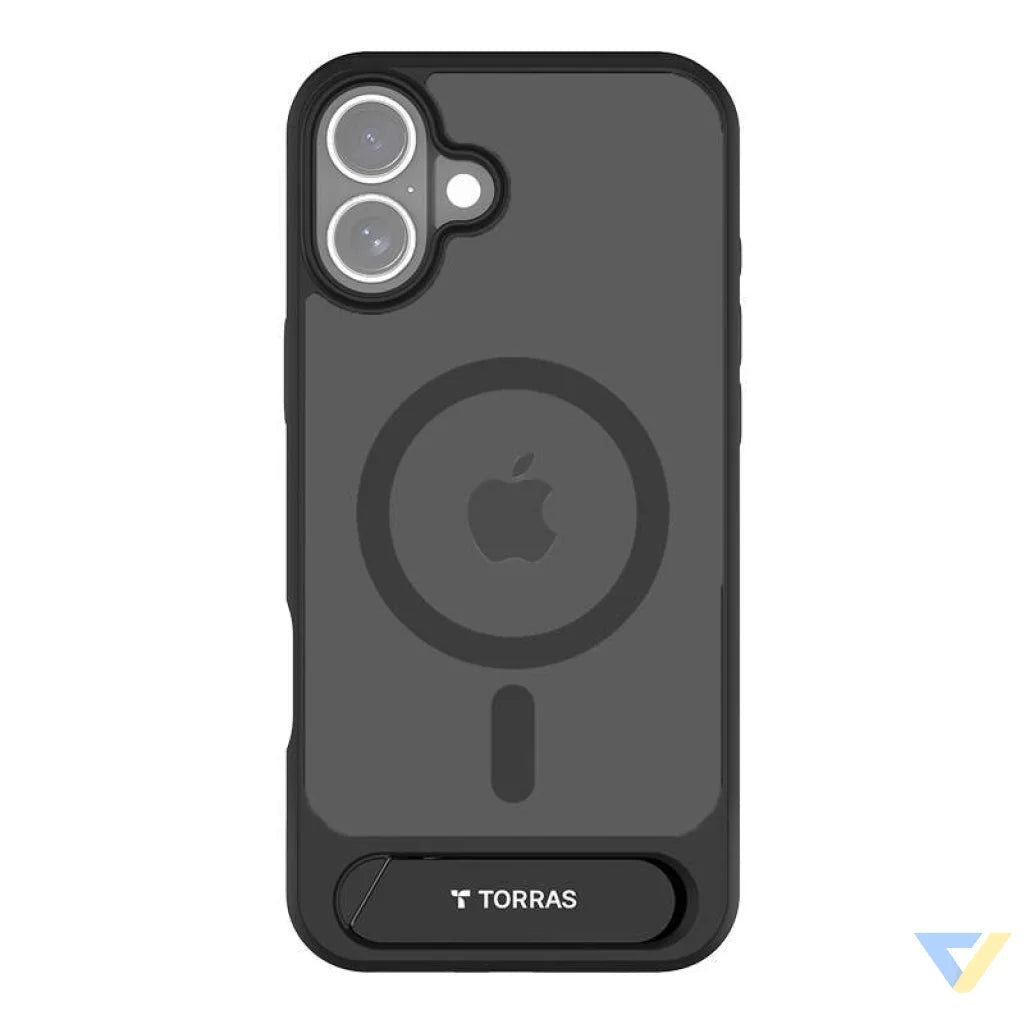 The Torras Pstand Case for iPhone 16 Plus features a magnetic design and offers a stable stand for comfort and protection of your device. It also allows fast wireless charging, and compatibility with magnetic accessories enhances its functionality.