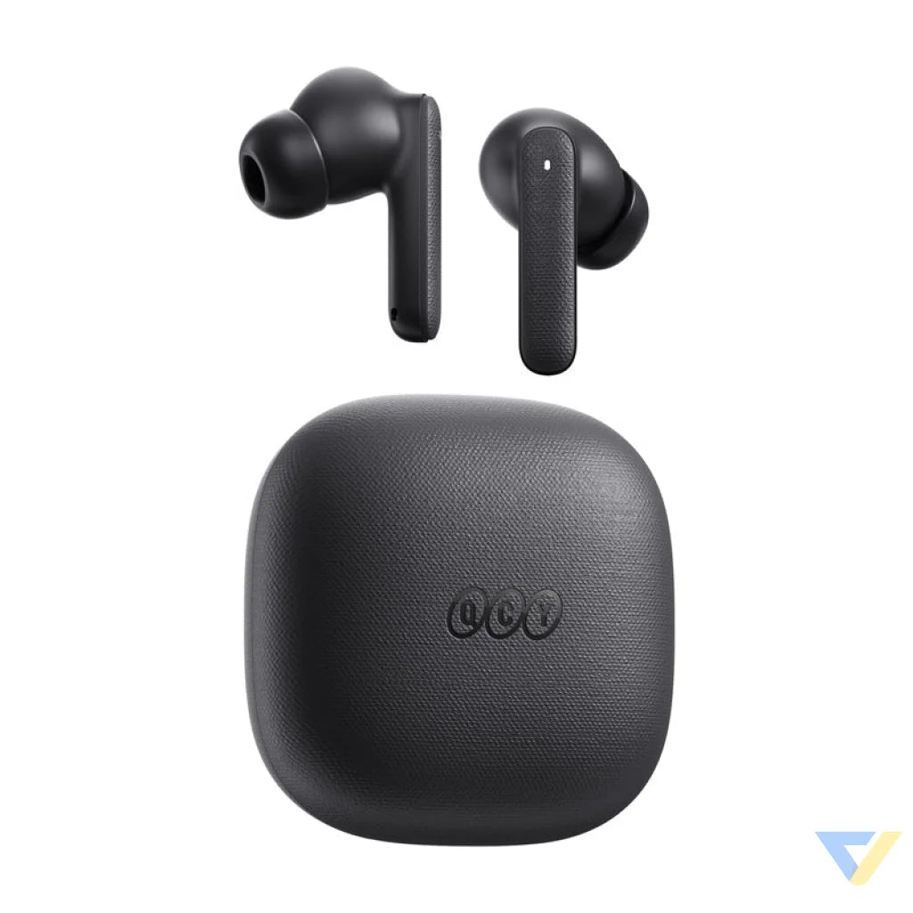 QCY Buds T43 are distinguished by their unique design - a gently curved casing with glossy edges and a fabric texture give them a sleek, modernist character. The lightweight design and curved S-curve structure ensure a stable and comfortable fit even during intense movement. These are headphones made for all-day use - you'll hardly feel them, yet they stay perfectly in place on your ears.