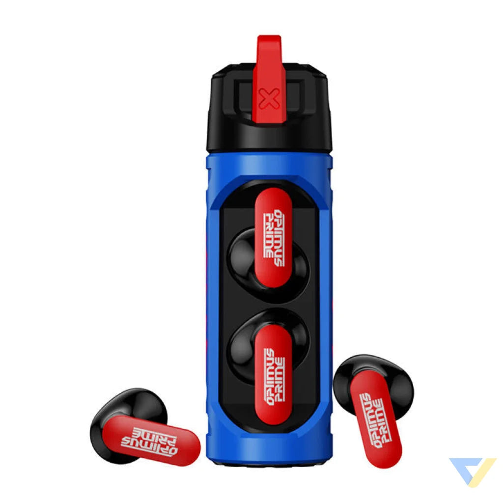 The case of the Transformers TF-T11 headphones is distinguished by its unique rotating design. The cylindrical case with a blue LED indicator gives it a modern touch that is sure to appeal to technology lovers. What's more, mechanical sounds will be heard as it rotates. In addition, the set comes with a practical necklace that allows you to wear the headphones around your neck, which prevents you from losing them.