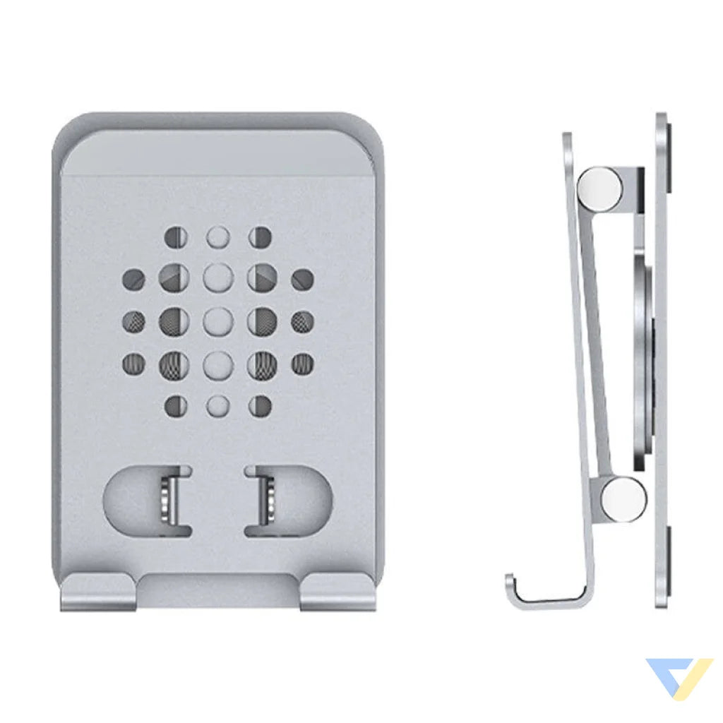 The Vention holder is a sturdy and stylish solution for anyone looking for a functional phone or tablet stand for their desk. Made of durable aluminum alloy, it provides unparalleled comfort and stability. With an adjustable tilt angle and 360° rotation, it allows you to position your device perfectly whether you're working, watching videos or video conferencing. The compact design with vents allows for efficient heat dissipation, which is especially important during prolonged use of mobile devices.