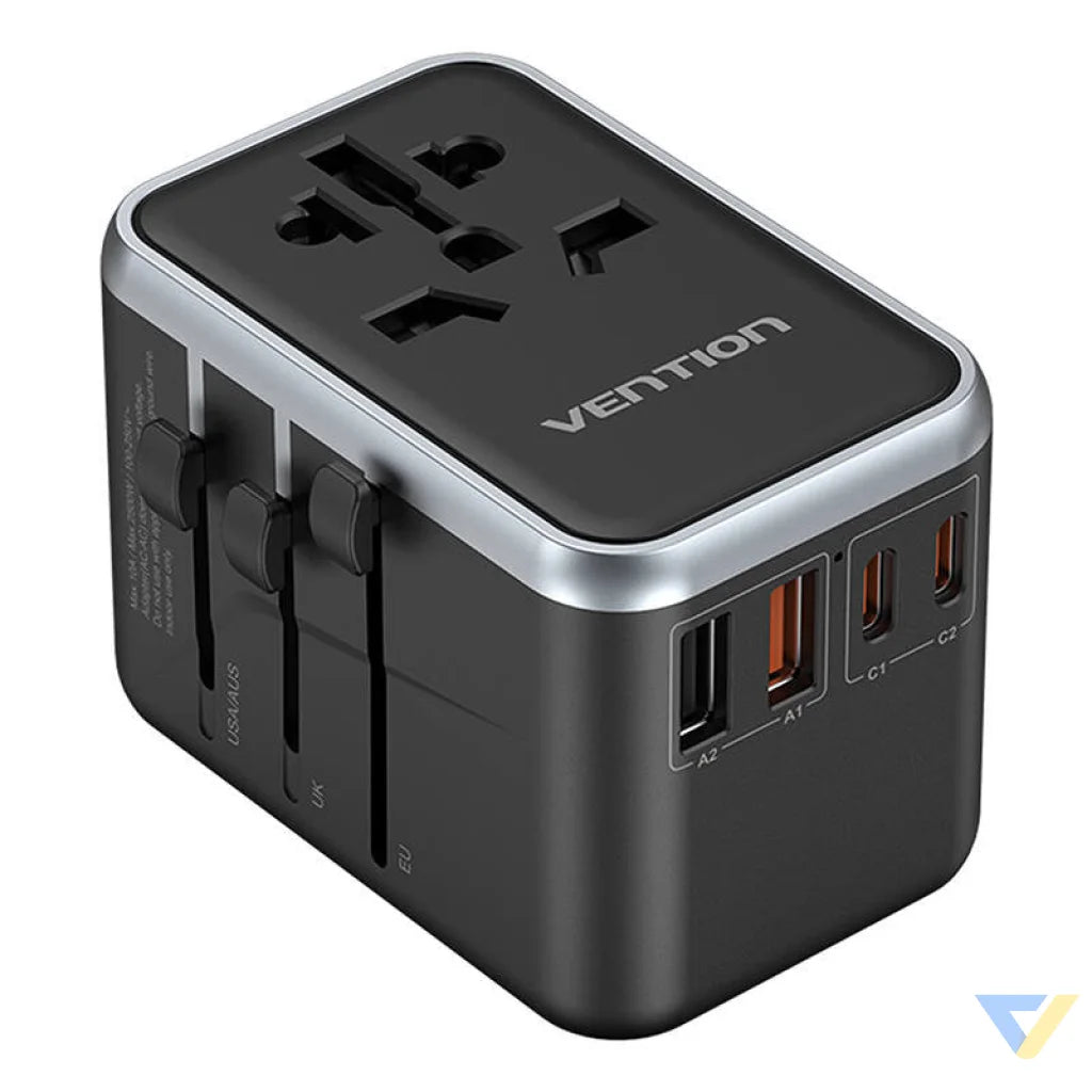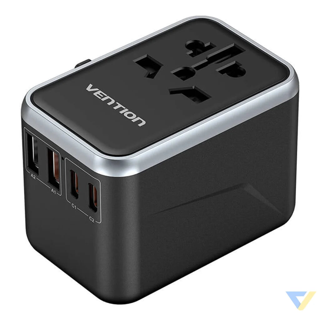 Vention FJFB0 GaN 2xUSB-C 2xUSB-A Universal Travel Adapter 65W (black).