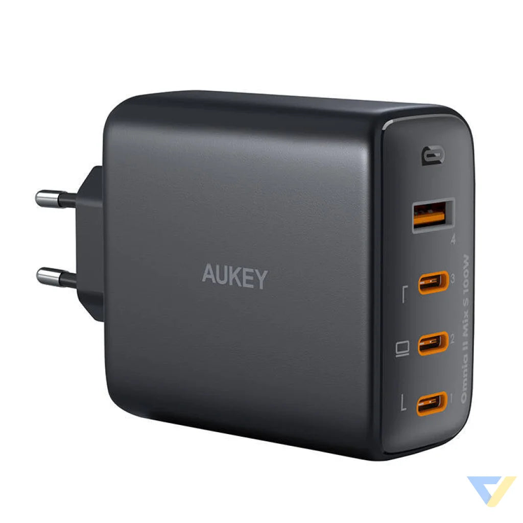 Aukey PA-B7S, 1xUSB-A, 3xUSB-C, 100W GaN Power Charger (black).