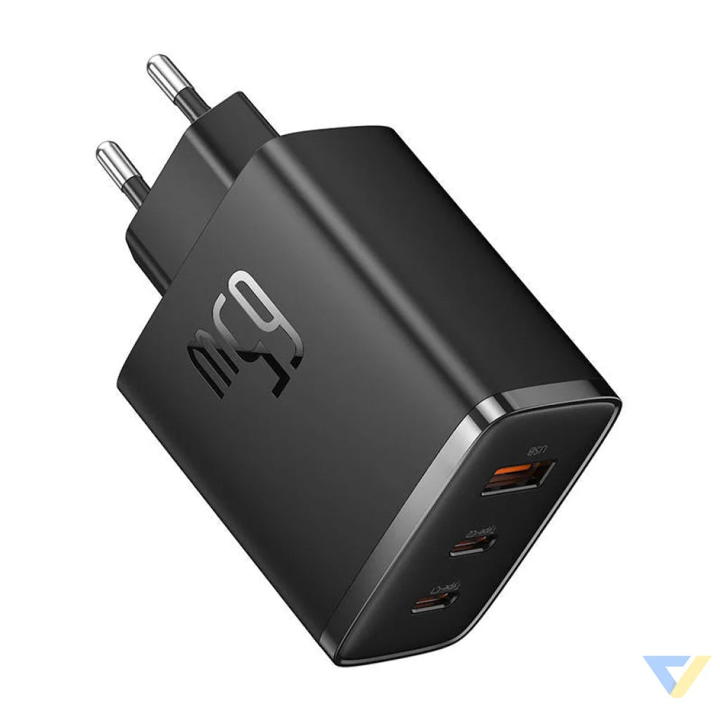 Charge your devices in significantly less time. The Baseus OS-Cube Pro wall charger provides a power output of up to 65W and supports various fast charging standards. It is equipped with 3 ports (2x USB-C, 1x USB-A), allowing you to connect up to 3 devices simultaneously. The product utilizes advanced GaN5 technology, ensuring high efficiency, reliable performance, and a compact size.