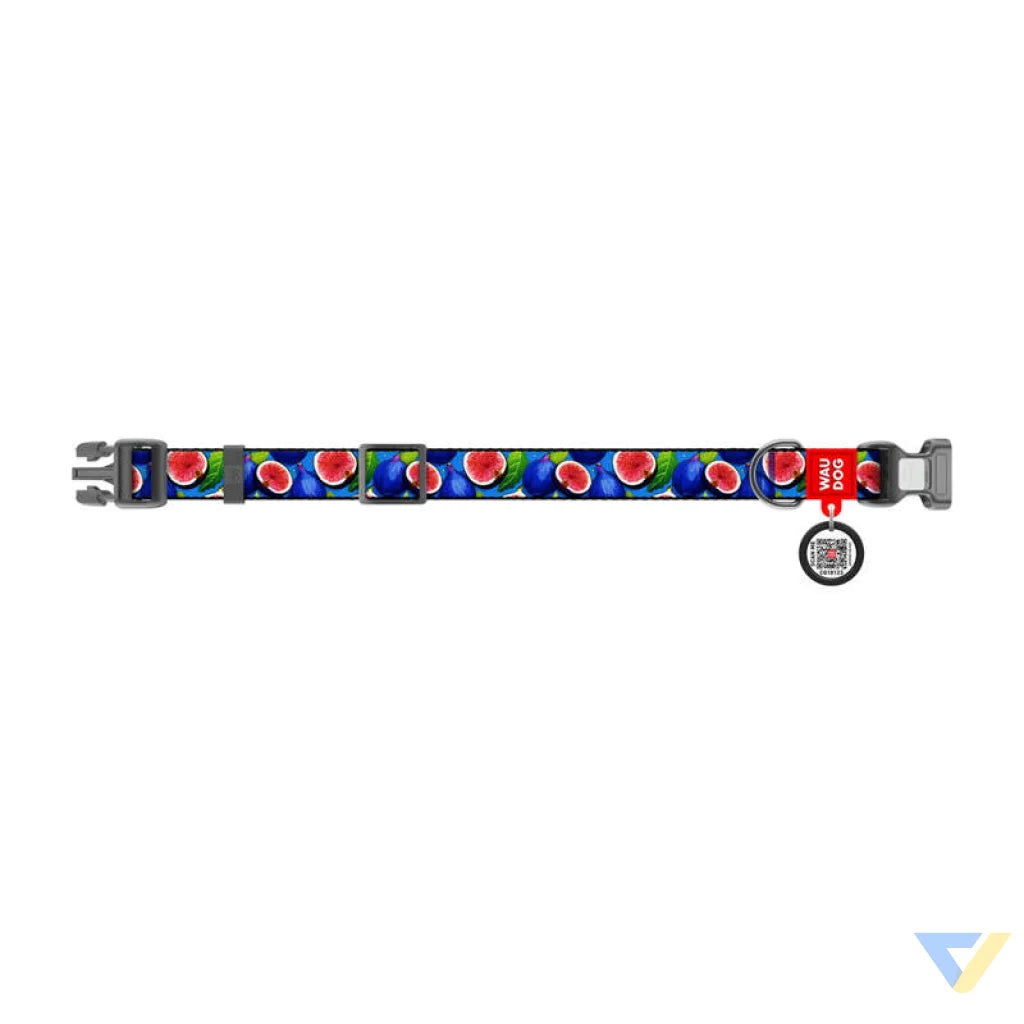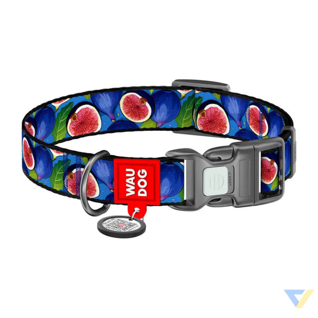Nylon collar with QR code for dog Waudog "Fig", size S