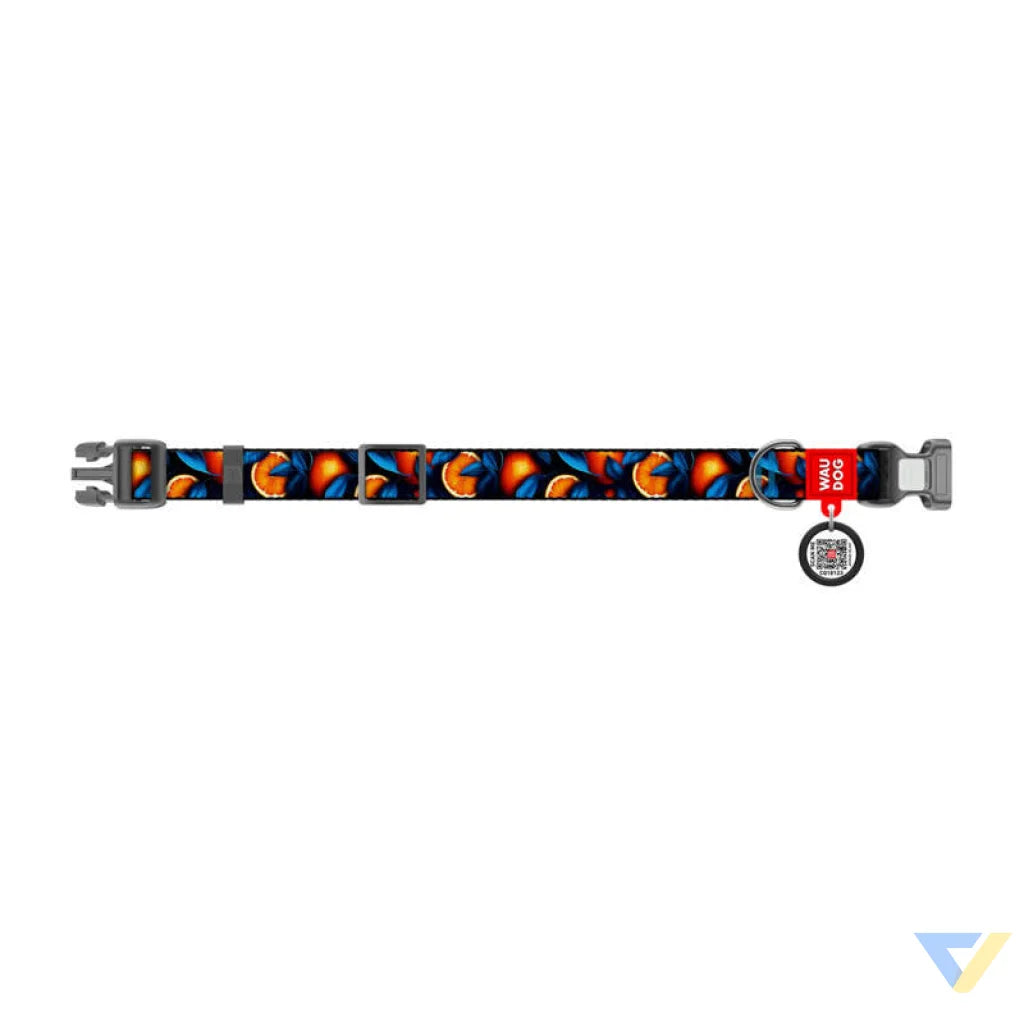 Nylon collar with QR code for dog Waudog "Oranges", size L.