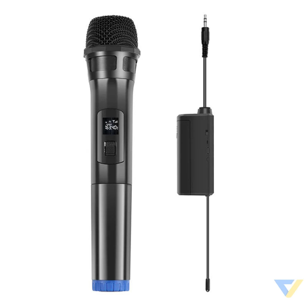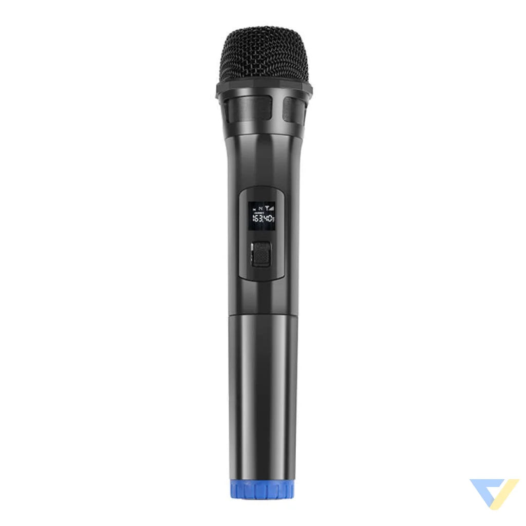 The microphone is compatible with various audio systems, speakers, and amplifiers. This makes it suitable for various applications, including performances, concerts, important events, or karaoke parties. It also features a built-in LED display that provides basic information about its operation.