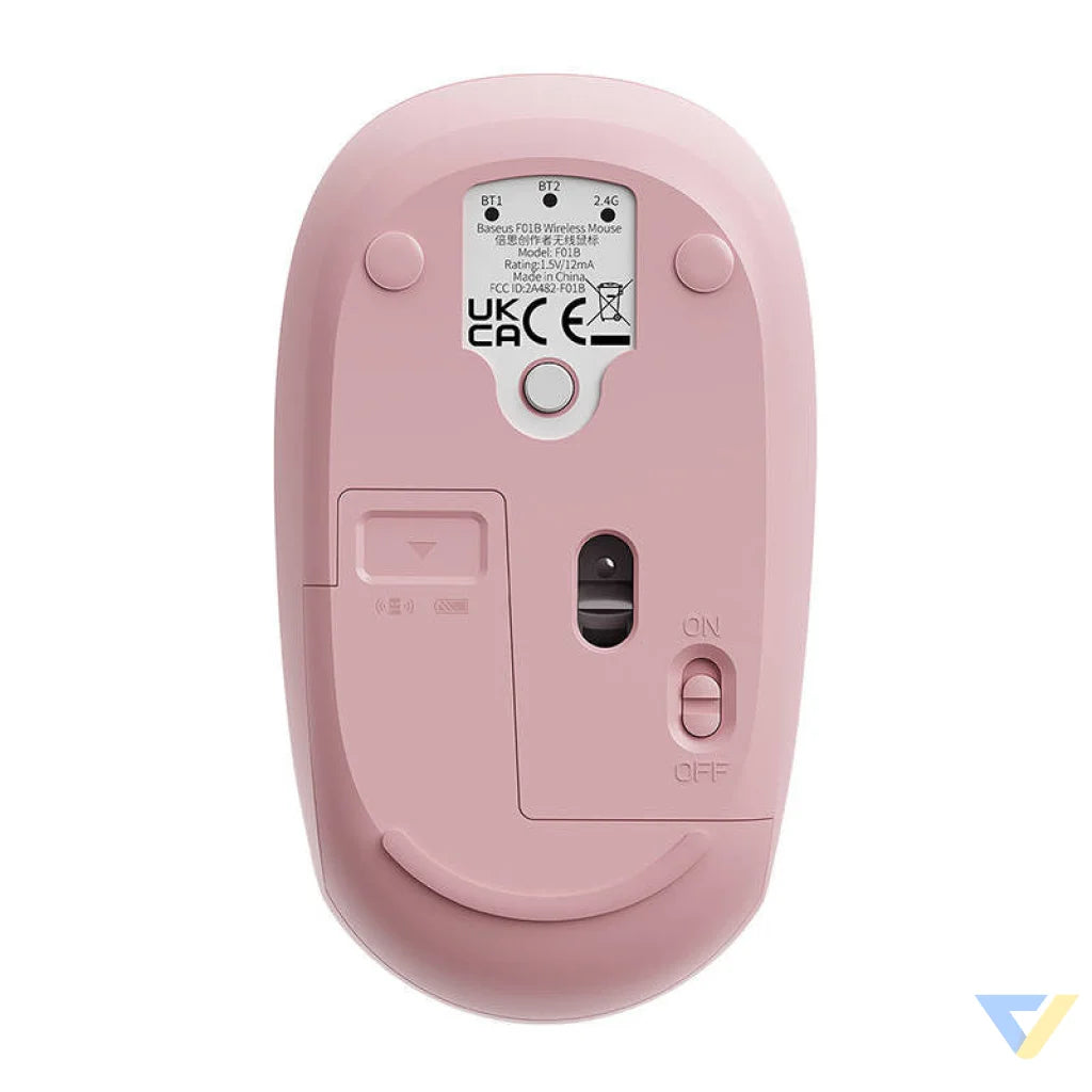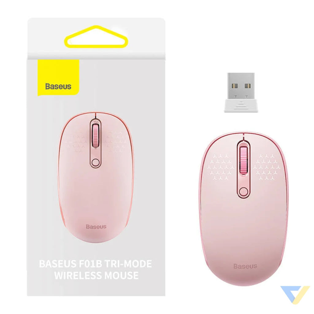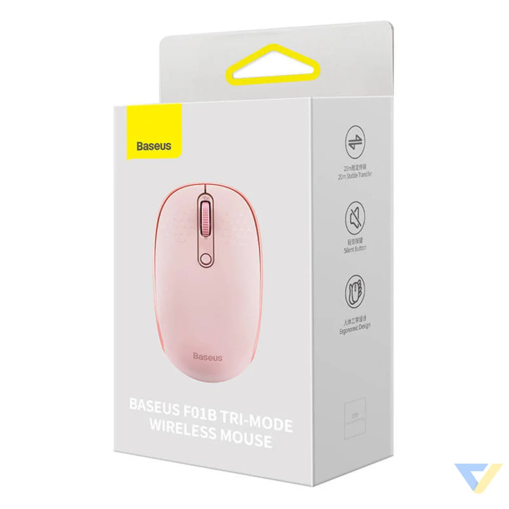 Baseus F01B Tri-Mode 2.4G BT 5.0 1600 DPI Wireless Mouse (pink).