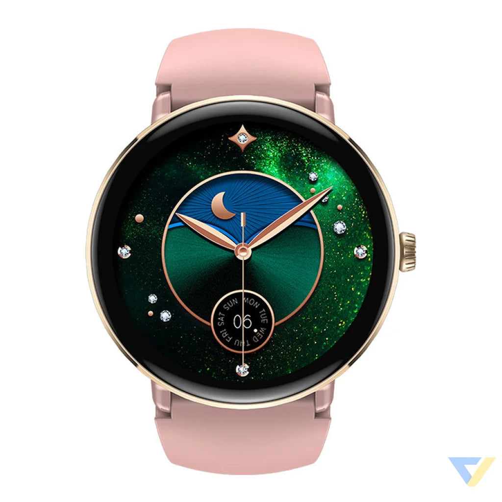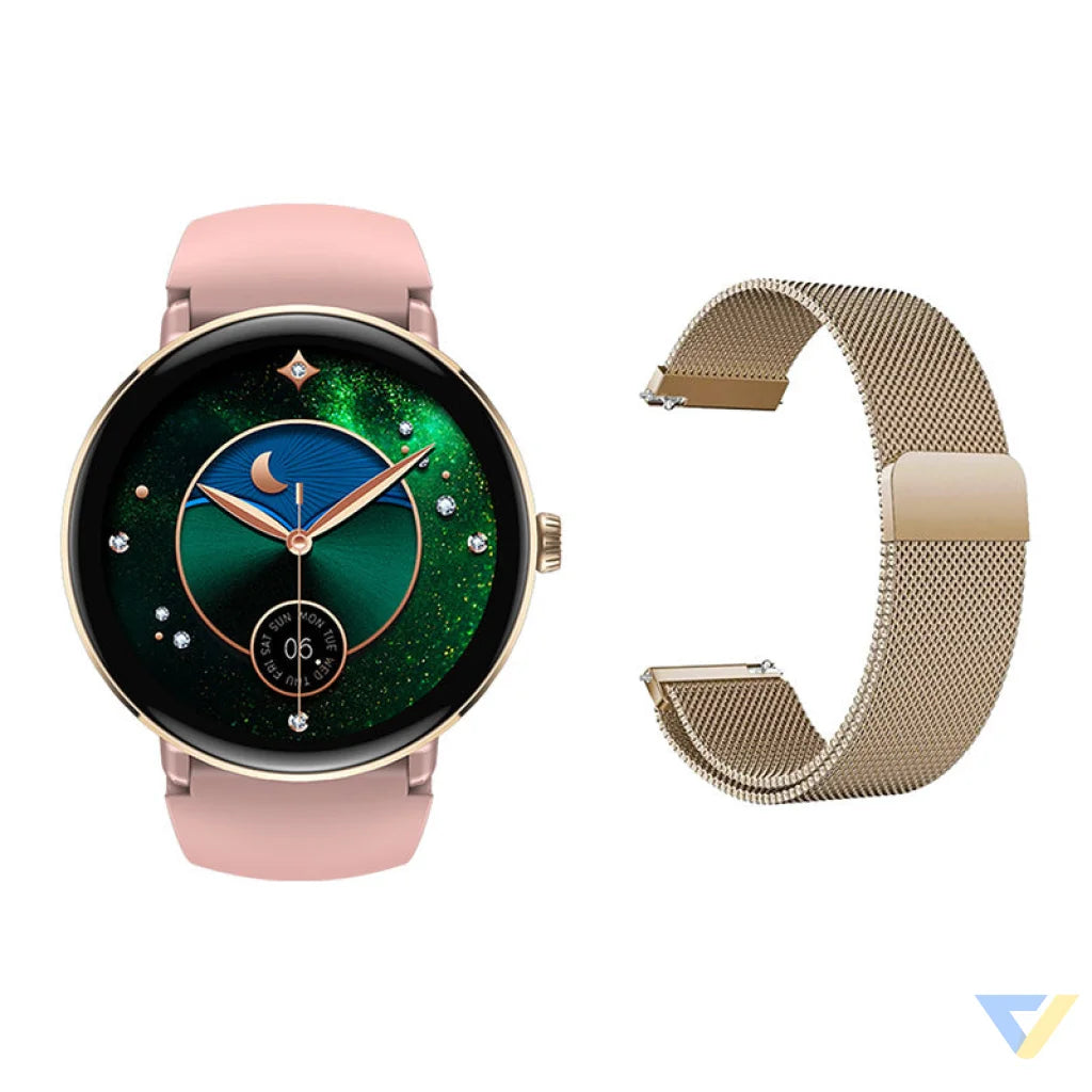 Zeblaze Lily 2 is distinguished by its compact 38.8-millimeter envelope and a weight of just 21.6 grams (without the strap). Its slimness (10.5mm thick) makes it almost imperceptible on the wrist, while the elegant metal finish adds a touch of class. It comes with two straps - a silicone one and a steel one in the color of the watch - so you can match its look to the occasion.