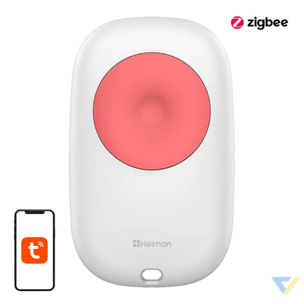 The Heiman HS1EB smart alarm button is a reliable device designed to send an alarm signal in emergency situations. It has a compact and stylish design and uses Zigbee technology with extremely low power consumption for long battery life. It is ideal for use in homes, offices, stores, hospitals, banks and guard posts.